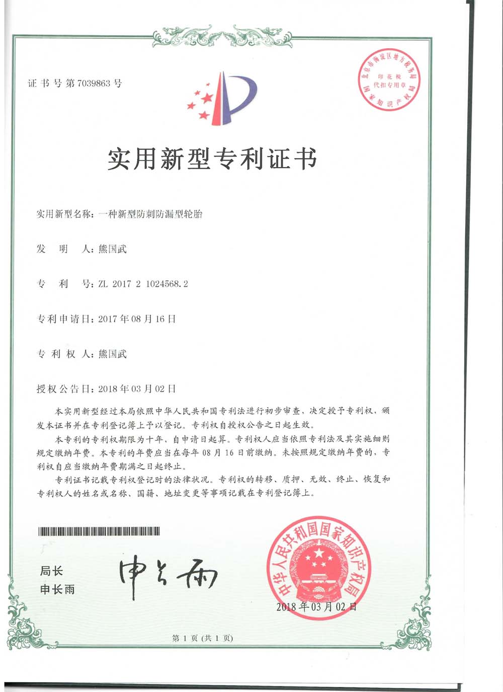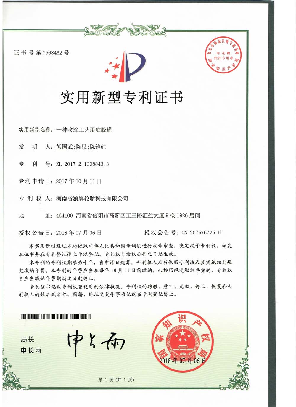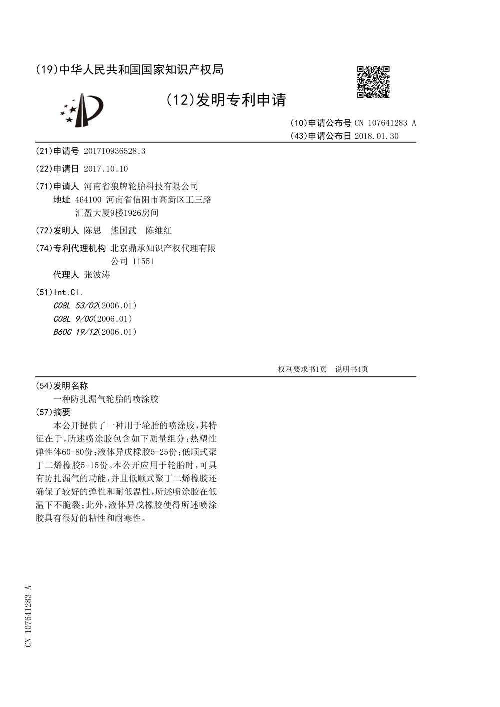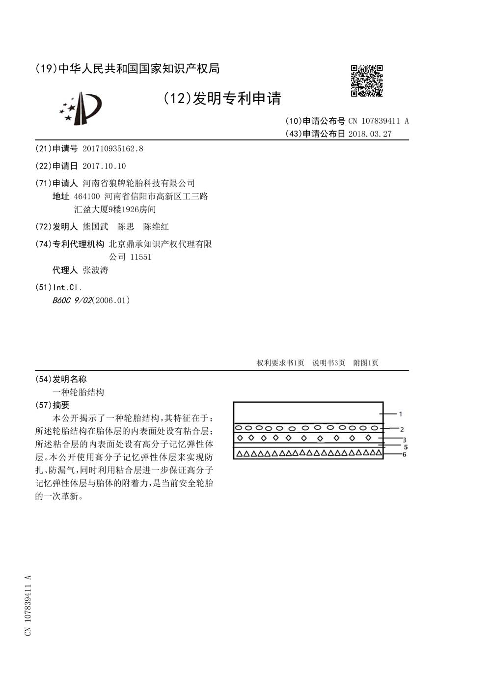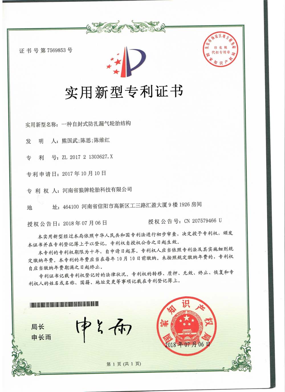 中橡狼牌輪胎發(fā)明專利、實用新型專利及外觀設計專利