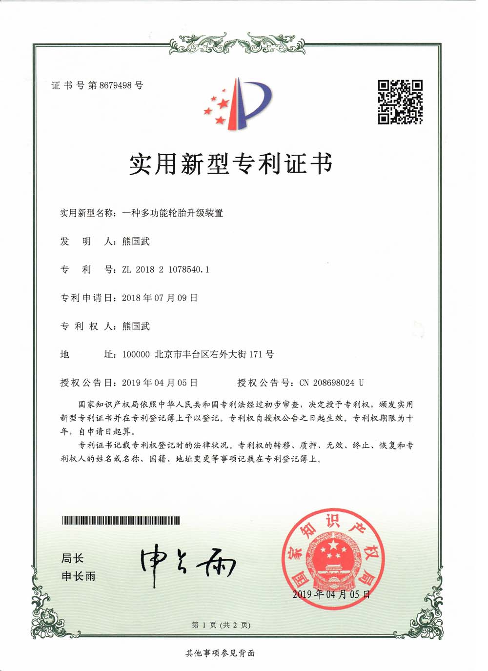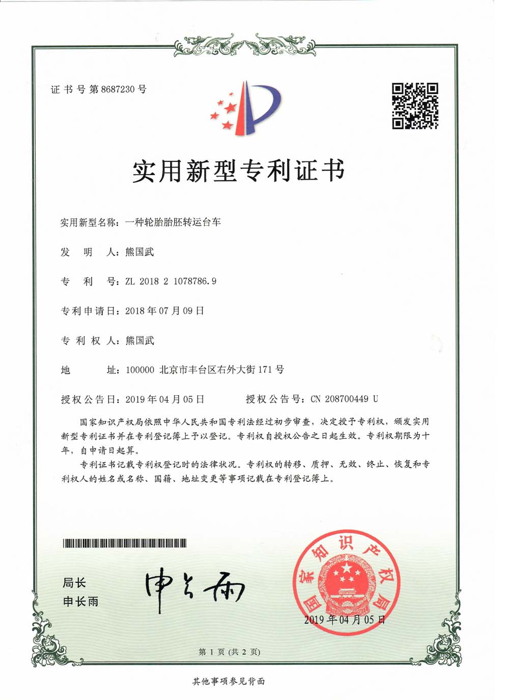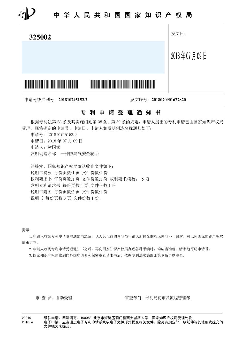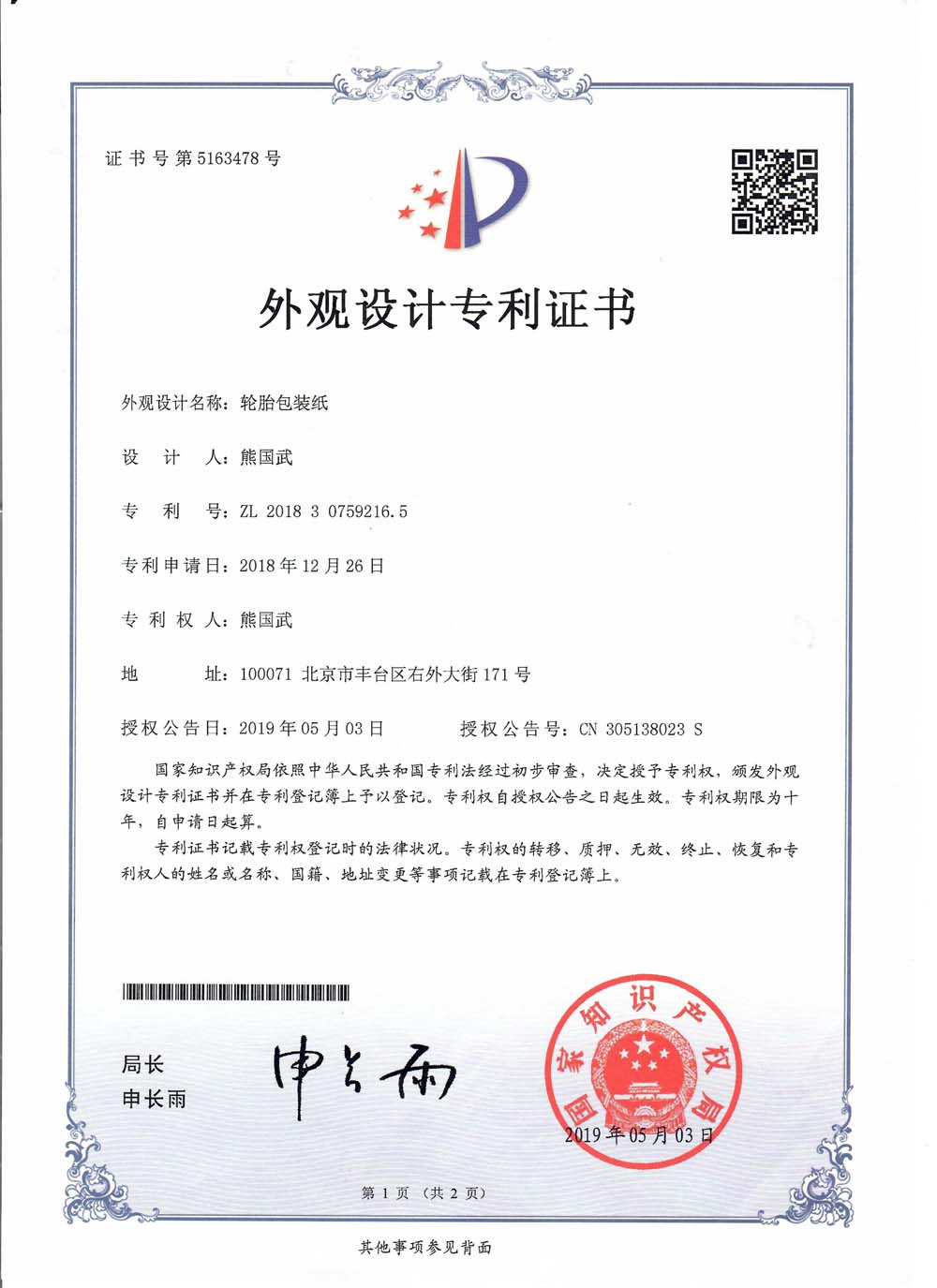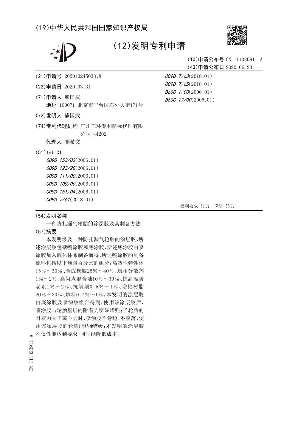 中橡狼牌輪胎發(fā)明專利、實用新型專利及外觀設計專利